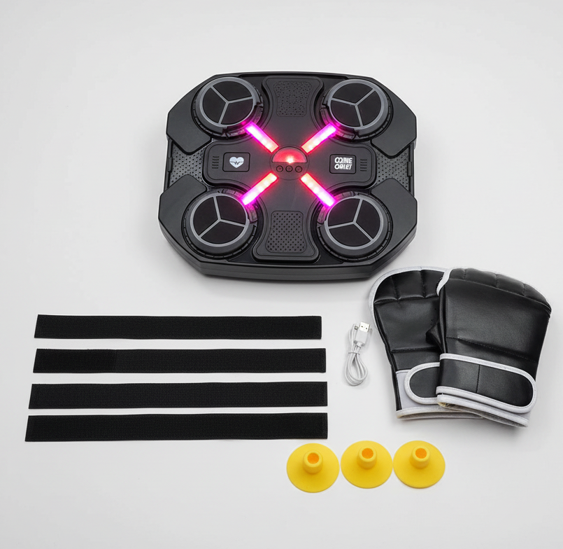 · 1 Máquina de boxeo KOflow™ con luces LED y altavoz incorporado, con opción de conectar por bluetooth.